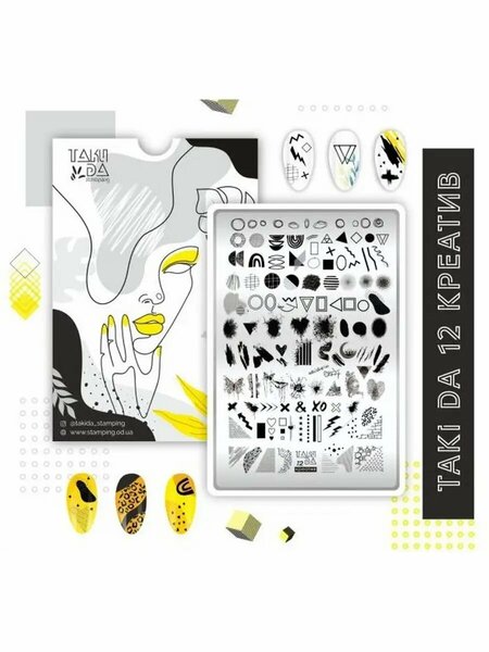 Внимание! На пластине есть защитная пленочка которую нужно снять перед использованием . Декор для ногтей Такида . Пластина для стемпинга прекрасно дополнит любой маникюр . Стемпинг для ногтей выполняется с помощью лака для стемпинга, штампа для ногтей штампа для стемпинга и скрапера скребка для ногтей . Декор ногтей с помощью пластины для маникюра прекрасно сочетается со слайдер дизайн стемпинг дизайн ногтей, блестки для ногтей , стразы для ногтей , фольга для ногтей . Дизайны для ногтей. Хорошая гравировка- пластиковая подложка- стильный дизайн- самая тонкая линия гравировки. Стемпинг (stamping в переводе с английского: тиснение или штамповка) - уникальная техника нейл-арта быстрого нанесения на покрытие ногтей рисунков и узоров выбранной тематики с помощью специальных инструментов. Эта техника поможет вам самостоятельно сделать в домашних условиях красивый дизайн ногтей, который визуально не сильно будет отличаться от художественной росписи тонкими кисточками. Внимательное изучение простых мастер-классов с фото и пошаговых видео-уроков, поможет начинающим освоить технику стемпинга за пару часов. Вы сможете сделать любой маникюр и декорировать ногти роскошным узором. Инструкция: 1. Уберите защитную пленку с палетки для стемпинга. 2. Нанесите на узор стемпинга для ногтей гель . 3. Разровняйте краску по всему узору с помощью скребка для стемпинга, убирая лишнюю краску. 4. Приложите штамп для стемпинга, на нем останется краска. 5. Перенесите краску на подготовленный ноготь. Затем закрепите топом для ногтей .