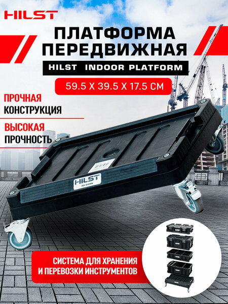 Транспортная платформа на колесах для мобильной системы профессиональных ящиков для инструмента. Транспортная платформа - мобильная основа модульной системы HILST Box System Indoor. Платформа оснащена вращающимися колесами с тормозами и прочной конструкцией, допускающей максимальную нагрузку 100 кг. В сочетании с другими модулями из линии HSB Indoor (Box 100, Box 200, органайзеры, ToolBox), позволяет создавать мобильные транспортные для использования в мастерской, гараже, а также в доме. Система для хранения и перевозки инструментов HILST Box System Indoor. HILST Box System Indoor (HBS Indoor) - это своего рода мобильная, многофункциональная модульная мастерская для хранения и перевозки инструментов при применении внутри помещений. Преимущества ящиков и боксов из модульной серии HILST Box System Indoor: