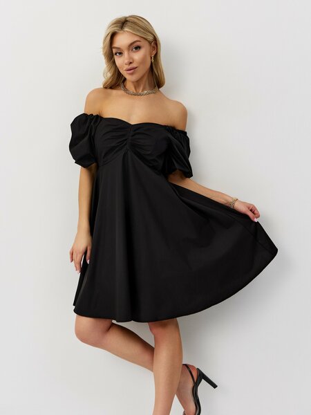 Платье мини с рукавами-фонариками — это воплощение элегантности и комфорта, идеально подходящее для весенне-летнего сезона. Сшитое из дышащей ткани, оно подарит вам ощущение свежести и легкости даже в самую жаркую погоду. Длина выше колен и силуэт трапеция подчеркивают женственность и грацию, а открытые спущенные плечи создают романтичный образ. Легкая летящая ткань делает это женственное платье идеальным выбором для вечерних выходов. Благодаря универсальному стилю, приталенное платье А-силуэта подходит как для офиса, так и для пляжа, а также станет прекрасным выбором на торжество для подружек невесты. Его текстильная фактура приятна на ощупь, а однотонный рисунок позволяет легко комбинировать его с различными аксессуарами при повседневной носке. Нарядное платье-трапеция подарит вам комфорт, стиль и уверенность в себе.