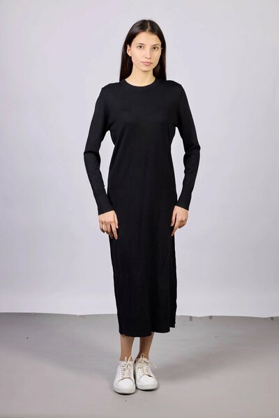 Платье-лапша длины макси с круглым вырезом. Лаконичная модель, выполненная из эластичного трикотажного материала, станет стильным и одновременно комфортным элементом гардероба.