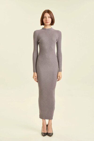 Лаконичное трикотажное платье прилегающего силуэта создаёт выразительный и утончённый образ, подчёркивая плавность линий тела и формируя аккуратную вертикаль. Удлинённая длина делает модель особенно элегантной и визуально вытягивает силуэт, придавая ему стройность. Мягкая фактурная вязка обеспечивает комфорт и свободу движений, а высокий аккуратный ворот делает образ более собранным. Длинные рукава привносят ощущение баланса и дополняют гармоничную пропорцию. Такое платье легко сочетать с обувью на каблуке, ботинками или верхней одеждой, создавая сдержанные и современно выглядящие образы.
