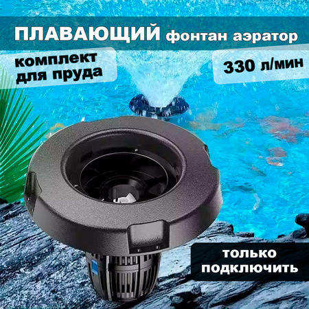 Плавающий фонтан-аэратор распылитель для пруда и водоема COP-10000. Это универсальный готовый аэратор для пруда комплект, сочетающий в себе красоту декоративного фонтана и функциональность системы аэрации. Устройство предназначено для обогащения воды кислородом и поддержания здорового микроклимата в пруду или водоеме. Плавающий фонтан-аэратор COP-10000 оснащён электрическим насосом аэратором мощностью 90 Вт, с производительностью до 20000 л/ч. Мощный поток выбрасывает воду вверх, создавая эффектную водную картину высотой до 1 метра и шириной до 3 метров. Благодаря этому формируется не только декоративный плавающий фонтан, но и эффективный аэратор распылитель для пруда, насыщающий воду кислородом при каждом выбросе брызг. Принцип работы прост: при выбросе воды в воздух она смешивается с кислородом, а затем падает обратно в водоём, улучшая циркуляцию и предотвращая застой. Такой плавающий мини-фонтан идеально подходит для садового пруда, декоративного озера, водоема на участке или небольшого рыбного хозяйства. Плавающий садовый фонтан легко установить — достаточно заякорить его на нужной глубине. Он работает от сети 220–240 В, безопасен и энергоэффективен. Преимущества: - Комбинированный фонтан-аэратор пруд — украшение и аэрация в одном устройстве; - Готовый аэратор универсальный в сборе — не требует сложного монтажа; - Энергосберегающий электрический аэратор мощностью 90 Вт; - Подходит для аэрации пруда и водоема, предотвращает цветение воды; - Эффектный садовый плавающий фонтан с куполом до 3 метров; - Простая установка — фонтан плавающий от сети, длина кабеля 10 м; - Отличное решение для эстетики и здоровья водоёма. Характеристики: Тип: фонтан-аэратор плавающий COP-10000 Мощность: 90 Вт, энергосберегающий Производительность: до 20000 л/ч Напряжение: 220–240 В, 50 Гц Ширина водной картины: до 3 м Высота водной картины: до 1 м Размер: 275 × 252 × 420 мм Длина кабеля: 10 м