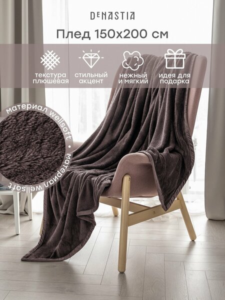 Плед DеNASTIA Тедди, 150 x 200 см, цвет темно-коричневый, T040135