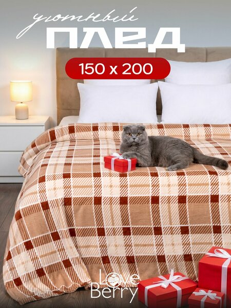 Плед 150х200 LOVEBERRY из велсофта, плюшевый на диван, клетка