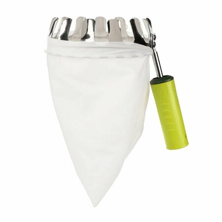 Инструмент предназначена для безопасного снятия фруктов и орехов с дерева без использования дополнительных приспособлений в виде подставок и лестниц. Тканевый мешок обеспечивает сохранность даже самых спелых плодов. В ручке из полипропилена есть отверстия для подсоединения рукоятки от комбисистемы. Данная модель поставляется без рукоятки, что дает возможность пользователю подобрать черенок необходимой ему длины. Характеристики: Размер насадки 24х18,5х15 см; Диаметр насадки 15 см; Размер мешка 19х23 см.