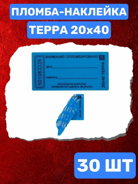 Наклейка Терра 20х40 подойдет для опечатывания любых поверхностей, не оставит следов, но обозначит факт вскрытия предупреждающей надписью на самой наклейке. Находят широкое применение, при опломбировании ценного имущества и лабораторного инвентаря, устанавливаясь на поверхности из металла, древесины, стекла, ДСП и кожзаменителя. Удаление пломбы не оставит следов на монтажной поверхности, но проявит на самой пломбе предупреждающий текст: "стоп, вскрыто!" — однозначным образом свидетельствующий о факте постороннего вмешательства. Примечательно, что любые попытки наклеить пломбу в исходное место и скрыть произошедшее не возымеют никакого результата. Высота 20 мм, Длина 40 мм, Температура установки от 0 до +45, Температура использования от -40 до +90. Безопасность, Для опечатывания, Защита, Надежность