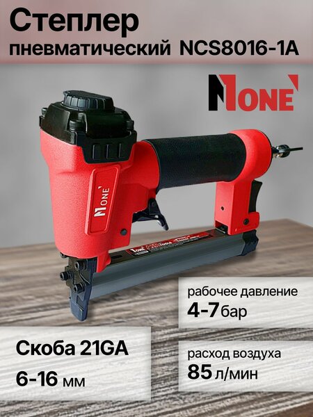 Пневматический степлер NUMBER ONE NCS8016-1A Professional — профессиональный инструмент для быстрого и надёжного крепления различных материалов с помощью скоб (степлерных скоб). Предназначен для работ по монтажу обивочных материалов, уплотнителей, мембран, листовых материалов, мягкой мебели, фанеры, изоляции и декоративных элементов. Обеспечивает высокую скорость работы, точность попадания скобы и длительный срок эксплуатации.