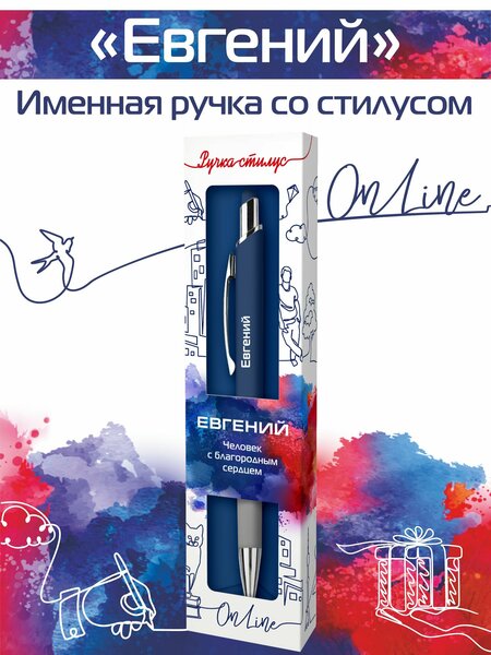 Подарочная именная ручка со стилусом OnLine с именем "Евгений" (51)