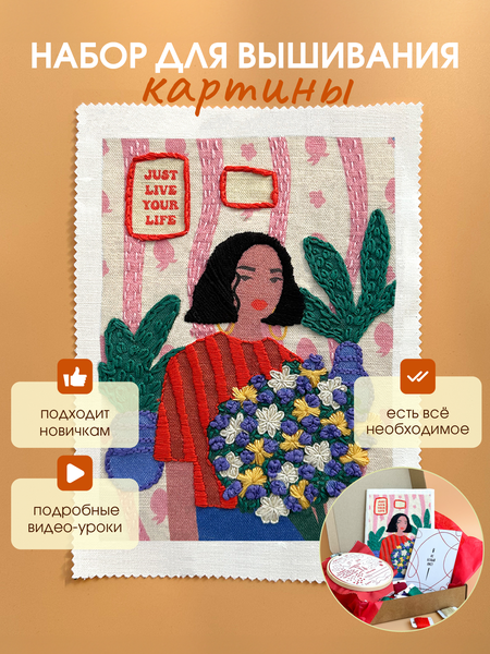 Подарочный набор для вышивания Не белый лист "Девочка с цветами" вышивка в свободной технике, гладью, с обучением