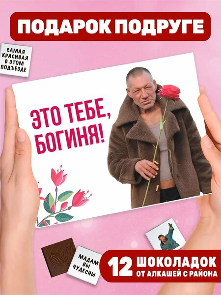 {"widgets":{"@card/BlockReviewsGalleryCardGallery":{"/content/page/fancyPage/reviewBlock/photos":{"wrapperProps":{"margins":{"top":2,"bottom":3}},"limit":12,"composeId":"1453978928","needScroll":true,"isDesktop":true,"size":"medium","mediaItemIds":["mi_8096630224506877810","mi_942539518096455026","mi_1106813010080806005"]}}},"meta":{"/content/page/fancyPage/reviewBlock/photos":{"name":"@card/BlockReviewsGalleryCardGallery"}},"collections":{"reviewItem":{"ri_434462376":{"reviewId":"434462376","author":{"nickname":"Олег Кузнецов","avatarMediaItemId":"mi_11961288498288897154","isAnonymous":false,"publicId":"3576x75acyn1kh26utg2p45968","transition":{"type":"userPublicProfile","params":{"publicId":"3576x75acyn1kh26utg2p45968","title":"Олег Кузнецов","isPreview":true}},"analyticsData":{"uid":"1539528496"},"isPublicProfile":false,"isMyProfile":false},"authorItem":"au_10897386794912446236","rating":5,"reviewDate":"1771170083308","date":"15 февраля","advantages":"доставка очень быстрая!","commonText":"отличный подарок для подруги с юмором!!!","media":["mi_942539518096455026"],"fixId":434462376},"ri_424751286":{"reviewId":"424751286","author":{"nickname":"Даниил Мартынюк","avatarMediaItemId":"mi_17455348936084176448","isAnonymous":false,"publicId":"j6c8pf4hz152ttb9t7cj0kb978","transition":{"type":"userPublicProfile","params":{"publicId":"j6c8pf4hz152ttb9t7cj0kb978","title":"Даниил Мартынюк","isPreview":true}},"analyticsData":{"uid":"731978172"},"isPublicProfile":false,"isMyProfile":false},"authorItem":"au_6009885180295243331","rating":5,"reviewDate":"1765726601985","date":"14 декабря 2025","advantages":"Классный подарок","media":[],"fixId":424751286},"ri_413244736":{"reviewId":"413244736","author":{"nickname":"Имя скрыто","avatarMediaItemId":"mi_10976536813285640517","isAnonymous":true,"transition":{"type":"userAnonymousProfile","params":{"titleText":"Вы встретили пользователя‑невидимку","subtitleText":"Он оставил отзыв анонимно","action":{"text":"Хорошо"},"image":"https://avatars.mds.yandex.net/get-marketcms/1534436/img-2eaae591-05e7-4661-9698-e49722190f71.png/optimize"}},"isPublicProfile":false,"isMyProfile":false},"authorItem":"au_415136321195826420","rating":5,"reviewDate":"1758891040887","date":"26 сентября 2025","advantages":"Дизайн, юмор, вкус шоколада","disadvantages":"Не нашла","commonText":"Покупала в подарок подруге. Юмор оценен.","media":[],"fixId":413244736},"ri_430713495":{"reviewId":"430713495","author":{"nickname":"Игорь Дворецкий","avatarMediaItemId":"mi_12967259578244005869","isAnonymous":false,"publicId":"bga4zkhpzuaxbu44fpgjjwzh2r","transition":{"type":"userPublicProfile","params":{"publicId":"bga4zkhpzuaxbu44fpgjjwzh2r","title":"Игорь Дворецкий","isPreview":true}},"analyticsData":{"uid":"1209783784"},"isPublicProfile":false,"isMyProfile":false},"authorItem":"au_2787879682005373831","rating":5,"reviewDate":"1768837575050","date":"19 января","advantages":"Отлично, конфеты жене очень понравились","disadvantages":"Нет","commonText":"Рекомендую","media":[],"fixId":430713495},"ri_427433607":{"reviewId":"427433607","author":{"nickname":"сергей г.","avatarMediaItemId":"mi_14446859510613501475","isAnonymous":false,"publicId":"f4c892hnrrk2fxt0j5r4vrf6n8","transition":{"type":"userPublicProfile","params":{"publicId":"f4c892hnrrk2fxt0j5r4vrf6n8","title":"сергей г.","isPreview":true}},"analyticsData":{"uid":"36925433"},"isPublicProfile":false,"isMyProfile":false},"authorItem":"au_8190833311805454293","rating":5,"reviewDate":"1766923520343","date":"28 декабря 2025","advantages":"внутри коробки конфеты с фотографиями алкашей.","disadvantages":"норм","commonText":"норм","media":[],"fixId":427433607},"ri_409870707":{"reviewId":"409870707","author":{"nickname":"Искандар Муминов","avatarMediaItemId":"mi_8785657270677114223","isAnonymous":false,"publicId":"q13zjc8k5n2ytk0x13qqvc0zag","transition":{"type":"userPublicProfile","params":{"publicId":"q13zjc8k5n2ytk0x13qqvc0zag","title":"Искандар Муминов","isPreview":true}},"analyticsData":{"uid":"876080139"},"isPublicProfile":false,"isMyProfile":false},"authorItem":"au_12881171661556744181","rating":5,"reviewDate":"1756626621872","date":"31 августа 2025","advantages":"смешные надписи, и фотографии, хорошая упаковка, качество фото и шоколада","disadvantages":"не обнаружил, в принципе все отлично, пришло в срок","media":[],"fixId":409870707},"ri_413265239":{"reviewId":"413265239","author":{"nickname":"Вероника М.","avatarMediaItemId":"mi_416105602403524659","isAnonymous":false,"publicId":"c200u1czyeutfezj9t0qz38nzg","transition":{"type":"userPublicProfile","params":{"publicId":"c200u1czyeutfezj9t0qz38nzg","title":"Вероника М.","isPreview":true}},"analyticsData":{"uid":"872462916"},"isPublicProfile":false,"isMyProfile":false},"authorItem":"au_8676362929170209926","rating":5,"reviewDate":"1758899490495","date":"26 сентября 2025","advantages":"Супер, прекрасный подарок для людей с юмором 👍","disadvantages":"Нет все хорошо отлично упаковано","commonText":"Берите не пожалеете, по вкусу не пробовала , брала на подарок","media":["mi_1106813010080806005"],"fixId":413265239},"ri_434224267":{"reviewId":"434224267","author":{"nickname":"Анастасия Котова","avatarMediaItemId":"mi_13256370734139275489","isAnonymous":false,"publicId":"xdenzddxth0492qpt3y4zkey0m