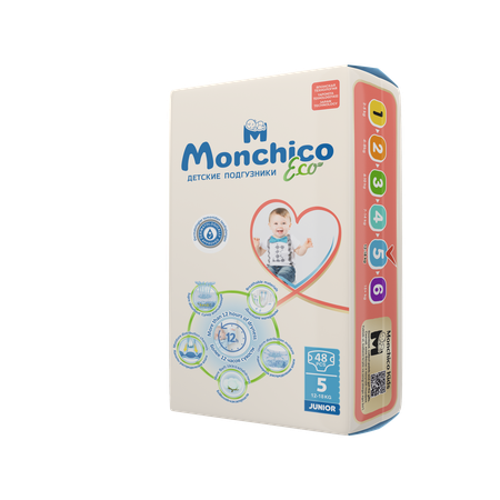 Экологичная упаковка: Упаковка подлежит переработке, отражая приверженность Monchio к ответственности перед окружающей средой. Сверхвпитывающее ядро: Быстро впитывает влагу, обеспечивая сухость и комфорт вашего малыша, снижая риск появления опрелостей. Гипоаллергенные: Изготовлены из материалов, дружелюбных к коже, чтобы минимизировать аллергические реакции и сохранить кожу вашего малыша чистой и здоровой. Непромокаемые барьеры: Двойные защитные барьеры обеспечивают дополнительную защиту от протеканий, сохраняя одежду и постель малыша сухими. Индикатор влажности: Удобная полоска, меняющая цвет, сразу показывает, когда пора менять подгузник. Мягкие и дышащие: Мягкая текстура подгузников и дышащая ткань способствуют циркуляции воздуха, предотвращая перегрев. Надежная посадка: Регулируемые застежки и эластичные боковины создают удобную посадку, позволяя вашему малышу свободно двигаться и чувствовать себя комфортно.