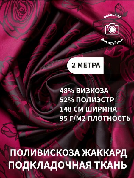 Подкладочная ткань Состав: вискоза 48%, полиэстер 52%. Плотность: 95 г/м2, Ширина: 148 см. Поливискоза - комфортная ткань, приятная мягкая на ощупь, имеет отличную воздухопроницаемость, не электризуется. Легко и красиво драпируется, при этом устойчива к сминанию, хорошо утюжится. не вызывает раздражения на коже. Имеет высокий уровень устойчивости к износу. Ткань подкладочная. Поливискоза. Подходит для внутренней отделки пальто, шуб, курток, юбок, брюк и другой верхней одежды. Цвет товара может отличаться от изображения в карточке товара, так как цветопередача зависит от настроек экрана вашего устройства. цена указана за 2 метра. При заказе 1, 2, З и более штук, материал нарезаем цельными отрезами по 2 метра.