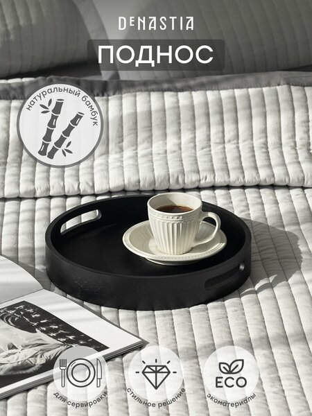 Поднос DeNASTIA Midday D30 см; 30x5 см, бамбук/МДФ, цвет черный