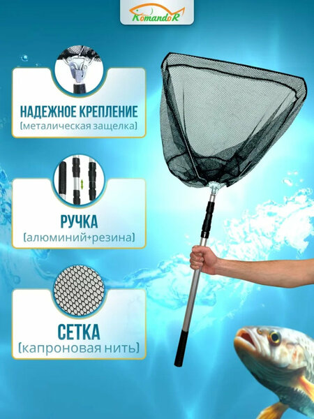 Подсак складной телескопический рыболовный для поплавочной, фидерной и карповой ловли - один из важнейших атрибутов в Вашем рыболовном снаряжении! Его назначение всегда одно – эффективное, аккуратное, быстрое и надежное извлечение из воды пойманной рыбы. Как бывает обидно, если попадается крупный экземпляр, а под рукой не оказалось подсака для рыбной ловли! Некоторые виды рыбы просто невозможно выловить одной лишь удочкой, такой улов обычно рвет леску и уходит обратно в водоем. Подсак телескопический имеет достаточную длину и прочную алюминиевую конструкцию для того, чтобы успешно вытаскивать на берег пойманную рыбу. В момент вытаскивания рыбы из воды, пойманной на удочку, чтобы избежать обрыва лески или схода рыбы с крючка, рыбный сачок опускают в воду и подводят под рыбу. Таким образом, рыба оказывается в сетке подсака. Благодаря складной конструкции, в сложенном виде подсак занимает мало места и его удобно брать с собой на рыбалку. Подсак для рыбы складной телескопический имеет удобную резиновую нескользящую ручку на рукоятке для комфортного хвата. Материал сетки прочный капрон с мелкой ячейкой не выгорает на солнце и долго сохраняет высокую прочность на разрыв . Сетка легко стирается и быстро сохнет.