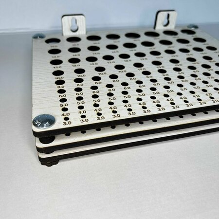Подставка под набор инструментов для дома. Подставка под инструмент поможет в организации хранения фрез по металлу размером от3,0 до 20,0 мм, чтобы каждая фреза была под рукой и можно было быстро найти фрезу необходимого диаметра. Может использоваться как в навесном виде, так и в настольном. Загрязнения легко удаляются слегка влажной тряпочкой. Выполнена из ламинированного МДФ. Хранение инструмента в мастерской, в гараже, на даче или дома. Подойдет в качестве подарка для мужа, для папы, для брата и не только.