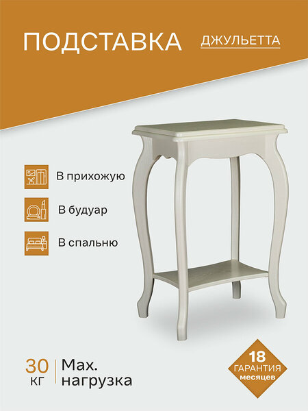 Подставка Джульетта — это элегантность и Функциональность для Вашего дома или квартиры. Модель изготовлена из МДФ, что гарантирует её долговечность и устойчивость. С максимальной нагрузкой до 30 кг, вы можете быть уверены в её надежности. Подставка Джульетта может служить как напольной подставкой для цветов, так и стойкой для растений. Она станет отличным выбором для размещения на подоконнике или в любом уголке вашего дома. Её компактный и продуманный дизайн позволяет использовать её для самых разнообразных целей, включая хранение книг или косметики. Джульетта – это не просто функциональный предмет, это стильный акцент вашего интерьера. Её изящные линии и гармоничное сочетание материалов добавляют уют и элегантность в любое пространство. Деревянные элементы создают неповторимую атмосферу тепла и уюта.