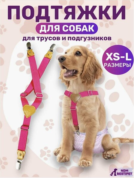 Подтяжки для собак для Подгузников и Трусов розовый S