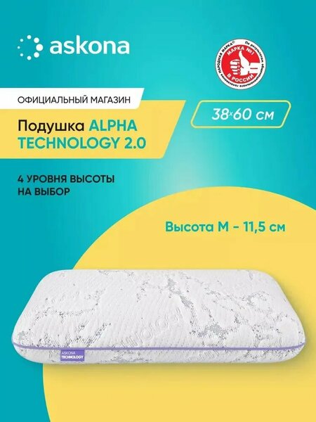 Расширенная гарантия 7 лет при покупке с чехлом Askona. Пены и ткани сертифицированы по международному стандарту оеко-тех, а это означает, что подушки подойдут даже грудничкам. Ознакомьтесь с новой коллекцией Technology 2.0! Технологии сна никогда не были такими комфортабельными! Мы прошли долгий путь, исследуя разные материалы, чтобы сделать подушки Technology 2.0 мягче, нежнее и уютнее, чем когда-либо прежде. Трикотаж Фактурный трикотаж не только способствует гигиеничному сну, но и обеспечивает комфорт и мягкость. Ткань чехла прекрасно сочетает в себе функциональность и безупречный дизайн, продуманный до мелочей. Пена ProTaktile Гранулы геля обладают не только отличным эффектом терморегуляции, но и дополнительными полезными свойствами! Мы добавили антибактериальные компоненты и повысили долговечность продукции, чтобы каждая наша подушка была не только удобной, но и безопасной для здоровья. О товаре Высокие технологии комфортного сна! Анатомическая подушка Alpha 2.0 серии Technology выполнена из пены ProTaktile - это пена с эффектом памяти и гранулами графита и серебра. Гранулы серебра предотвращают рост бактерий, а гранулы графита обеспечивают подушке еще более длительную и качественную эксплуатацию, что в совокупности придает подушке отличную терморегуляцию. Материал чехла выполнен из вискозного трикотажа с мета-нитью и дополнительной антибактериальной обработкой. Благодаря вискозе и мета-нитям трикотаж обладает эффектом легкой прохлады и свежести. Достоинства Alpha Technology 2.0: