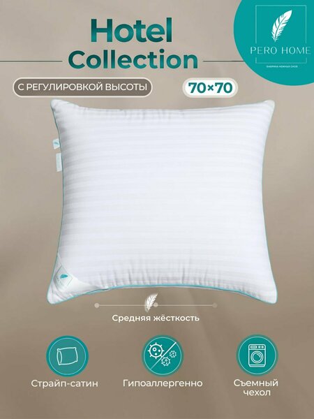 Подушка для сна PREMIUM 70х70 - анатомическая подушка для сна создана для тех, кто ценит уют и заботится о своем здоровье. Наполнитель из силиконизированного волокна Лебяжий пух делает ее гипоаллергенной, безопасной и идеально подходящей для аллергиков и чувствительной кожи. Двухслойный чехол: внешний из страйп сатина — мягкий, приятный на ощупь и устойчивый к износу, внутренний из спанбонда — обеспечивает надежную защиту и дополнительный комфорт. Благодаря возможности регулировки высоты — добавляя или удаляя наполнитель — вы подстраиваете подушку под свои индивидуальные предпочтения, обеспечивая правильную поддержку шеи и головы. Подушка 70х70 Pero Home — идеальный выбор для тех, кто ищет анатомическую, гипоаллергенную подушку для сна, которая поможет вам просыпаться бодрым и отдохнувшим каждое утро.