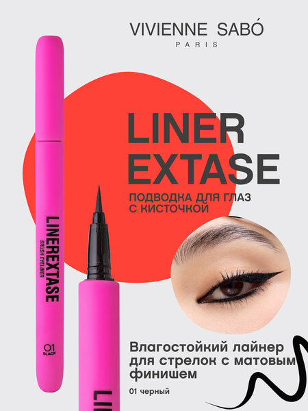LINEREXTASE от VIVIENNE SABÓ — влагостойкая подводка для глаз, которая подарит тебе невероятное удовольствие при каждом макияже! Тактильно приятный силиконовый чехол, который так и хочется гладить, мягкая подвижная ласкающая кисточка, легкость движений, насыщенный оттенок и стойкая текстура, которая выдержит даже самую жаркую страсть… Подводка в мягком чехле легко скользит в руке, помогая уверенно дойти до самых ярких стрелок в любых обстоятельствах. В основе ее текстуры — современные полимеры, которые делают массу влагостойкой. Уникальность формулы в том, что подводка будет стойкой до тех пор, пока ты сама не захочешь смыть ее теплой водой без использования дополнительных средств. Внутри флакона есть специальный шарик, который не дает лайнеру высыхать: встряхни его перед применением. LINEREXTASE в насыщенном черном 01 и коричневом 02 тоне придает взгляду неповторимую выразительность и глубину. Подводка с упругой кисточкой из мягкого ворса позволяет рисовать самые заветные желания, будь то широкая линия или совсем тонкая стрелка с матовым финишем. Структура кисти создана таким образом, чтобы оттенок был ярким даже при нежном касании. VIVIENNE SABÓ точно знает, как доставить девушкам удовольствие!