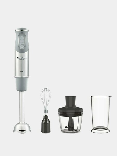 Мощность - 800 Вт Тип - погружной Количество скоростей/режимов - 20 Мерный стакан - 800 мл Измельчитель - 500 мл С погружным блендером Quickchef от Moulinex вы получите невероятную производительность и полный контроль благодаря мотору мощностью 800 Вт и 20 скоростям работы, которые можно регулировать прямо в процессе использования устройства с помощью интуитивного и простого переключателя. Приготовить в блендере домашний майонез и множество других блюд легко и просто благодаря удобным функциям и аксессуарам: специальная защита от брызг и нескользящая ручка повышают комфорт использования, а уход становится легче – съемные части блендера можно мыть в посудомоечной машине. В комплект входят удобный мерный стакан объемом 800 мл, измельчитель объемом 500 мл для легкого измельчения большого разнообразия продуктов и венчик для блендера, позволяющий очень просто взбить ингредиенты. Эксклюзивная технология PowelixБлагодаря технологии лезвий Powelix блендер на 30% быстрее* и эффективнее измельчает и смешивает любые продукты — как мягкие и волокнистые, так и твердые — до однородной кремовой текстуры! Высокая эффективностьМотор мощностью 800 Вт для оптимального качества измельчения и смешивания. 20 настроек скоростиМеняйте скорость, не выключая блендер, с помощью удобного переключателя. Защита от брызгСпециальная форма погружной части блендера защищает вас и рабочую поверхность от брызг в процессе работы. Мягкая нескользящая ручкаЭргономичный дизайн для удобного управления блендером даже мокрыми руками. Мерный стаканВ комплект входит мерный стакан объемом 800 мл для точности при приготовлении. ИзмельчительВ комплект входит измельчитель объемом 500 мл для быстрого и точного измельчения продуктов. ВенчикВ комплект входит венчик для эффективного взбивания и смешивания. Однородная кремовая текстураНож блендера создает вихревой поток, который затягивает ингредиенты под лезвия, и обеспечивает равномерное измельчение до однородной консистенции. Измельчайте даже самые твердые ингредиентыЗакаленные лезвия из нержавеющей стали с оптимизированным углом резки легко справляются даже с твердыми продуктами. Идеальное измельчениеОстрые лезвия превосходно измельчают и смешивают любые ингредиенты.