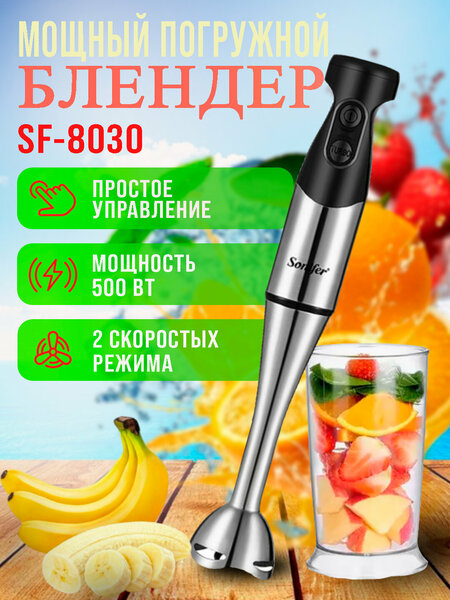{"widgets":{"@card/UniversalPromoBadge":{"/content/page/fancyPage/defaultPage/universalPromoBadge":{"wrapperProps":{"margins":{"bottom":"3"}},"initialTime":1771640908707,"offerComposeId":"3011189664585398005"}}},"meta":{"/content/page/fancyPage/defaultPage/universalPromoBadge":{"name":"@card/UniversalPromoBadge"}},"collections":{"productServiceSnippets":{"3011189664585398005":{"productSnippet":{"snippetId":"document_id","type":"MODEL_CARD_LAYOUT","productPayload":{"snippetStyle":"NORMAL","title":{"value":"Погружной блендер Sonifer SF-8030, мощность 500Вт, объём 0,6 л"},"badges":{},"price":{"actualPrice":{"amount":{"intPart":270000,"currency":"UZS"},"style":"RED","type":"OTHER_DISCOUNT"},"oldPrice":{"amount":{"intPart":299000,"currency":"UZS"},"style":"STRIKETHROWED"}},"gallery":{"mediaItems":[{"picture":{"baseUrl":"https://avatars.mds.yandex.net/get-mpic/13526260/2a00000198cda29e43893d5cb8e0142e0814/","width":1080,"height":1440,"title":"Погружной блендер Sonifer SF-8030, мощность 500Вт, объём 0,6 л"},"type":"IMAGE"},{"picture":{"baseUrl":"https://avatars.mds.yandex.net/get-mpic/4220209/2a0000019651a50f1eba4ebc78f5ff9e7031/","width":1080,"height":1440,"title":"Погружной блендер Sonifer SF-8030, мощность 500Вт, объём 0,6 л"},"type":"IMAGE"},{"picture":{"baseUrl":"https://avatars.mds.yandex.net/get-mpic/12279676/2a0000019651a50f1d05257fed9a71fbe793/","width":1080,"height":1440,"title":"Погружной блендер Sonifer SF-8030, мощность 500Вт, объём 0,6 л"},"type":"IMAGE"},{"picture":{"baseUrl":"https://avatars.mds.yandex.net/get-mpic/13894603/2a0000019651a50f1e7adf33762b0360ea78/","width":1080,"height":1440,"title":"Погружной блендер Sonifer SF-8030, мощность 500Вт, объём 0,6 л"},"type":"IMAGE"},{"picture":{"baseUrl":"https://avatars.mds.yandex.net/get-mpic/12280362/2a0000019651a50f1eccc7ce58ef36652908/","width":1080,"height":1440,"title":"Погружной блендер Sonifer SF-8030, мощность 500Вт, объём 0,6 л"},"type":"IMAGE"},{"picture":{"baseUrl":"https://avatars.mds.yandex.net/get-mpic/15521812/2a00000198cda29e4496c40fed0e582980ba/","width":1080,"height":1440,"title":"Погружной блендер Sonifer SF-8030, мощность 500Вт, объём 0,6 л"},"type":"IMAGE"},{"video":{"url":"https://runtime.strm.yandex.ru/player/video/vplvj6pzuef27e5corgb","width":640,"height":360,"title":"Погружной блендер Sonifer SF-8030, мощность 500Вт, объём 0,6 л","preview":{"baseUrl":"https://avatars.mds.yandex.net/get-mpic/16332794/2a00000198ce7c3f9d17afa327c7492e1fb6/","width":640,"height":360,"title":"Погружной блендер Sonifer SF-8030, мощность 500Вт, объём 0,6 л"},"streams":[{"type":"dash","url":"https://strm.yandex.ru/vod/vh-market-upload-converted/vod-content/vplvj6pzuef27e5corgb/c9ad8a1c-672f-4484-a889-cbf1079ac7bd/kaltura/desc_32215240c2ed283d4f2bff0537ec6e02/x/ysign1=4c7a88006fb6ef8ff943e26056fbf9a3a60165e4bd18c1e41e5a9032ce766c4c,abcID=56084,chID=vplcw5a4be2almmy7knw,pfx,sfx,ts=699bbb4c,video=vplvj6pzuef27e5corgb/manifest.mpd?packager=1&packman=1"},{"type":"hls","url":"https://strm.yandex.ru/vod/vh-market-upload-converted/vod-content/vplvj6pzuef27e5corgb/c9ad8a1c-672f-4484-a889-cbf1079ac7bd/kaltura/desc_32215240c2ed283d4f2bff0537ec6e02/x/ysign1=1dd98528daecd7530681368e927d334220eee91d9d9fe434c629371ff497a2c1,abcID=56084,chID=vplcw5a4be2almmy7knw,pfx,sfx,ts=699bbb4c,video=vplvj6pzuef27e5corgb/master.m3u8?packager=1&packman=1"}],"playerId":"vplvj6pzuef27e5corgb"},"type":"VIDEO"}]},"rating":{"ratingValue":4.8,"ratingCount":48,"reviewsCount":22,"ratingCountStats":{"cnt1":1,"cnt2":1,"cnt3":0,"cnt4":2,"cnt5":44},"snippet":{"rating":"4.8","type":"product","description":"(48) · 195 купили","descriptionList":["(48)","195 купили"],"ratingStar":"5"}},"wishlistButton":{"businessId":215292891,"mskuId":4380851658,"modelId":1157167767,"oskuId":4600610672,"offerId":"IaRnZOpO6eUeI7RyWqV7Kg"},"productRating":{"rating":"4.8","type":"product","description":"(48) · 195 купили","descriptionList":["(48)","195 купили"],"ratingStar":"5"}},"baobabPayload":{"type":"offer","wareId":"IaRnZOpO6eUeI7RyWqV7Kg","modelId":1157167767,"marketSku":"4380851658","snippet_type":"product","isExpress":false,"price":299000,"additionalPrices":[{"priceType":"withDiscount","priceValue":270000},{"priceType":"unknown","priceValue":299000}],"hid":70359370,"shopId":431782,"shopSku":"MRKT-N74D1ADV","supplierId":215648710,"supplierType":3,"isUltima":false,"oskuId":4600610672,"snippetTheme":"GRID_FULL","stockCount":4,"rating":{"rating":"4.8","purchaseCount":"195","gradesCount":"48","ratingType":"product"},"promoLogJoinId":"d9ebdf7a519390a34040b7e3499c46f2/98367ddd7bde0104"},"themeType":"GRID_FULL"}}}}}