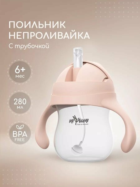 Поильник детский "Miyoumi", непроливайка, с трубочкой, силиконовый носик