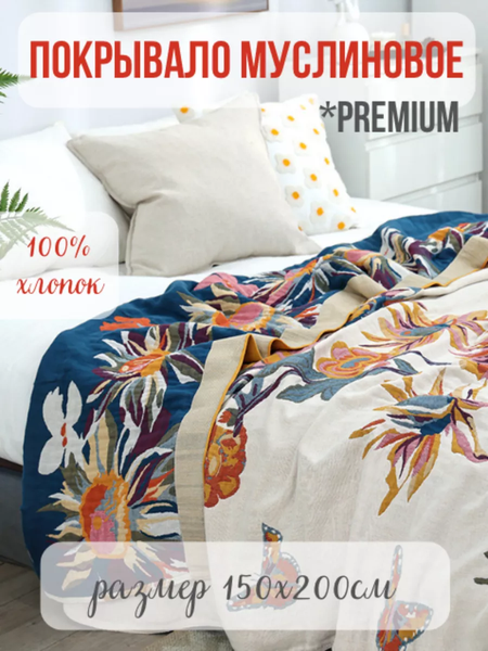 Муслиновое покрывало накидка для ценителей экологичных и натуральных материалов. Большой размер 150х200см подойдет для любого дивана, кровати или кресла, а 5 слоев воздушного муслина смогут подарить комфорт для сна. Структура ткани хб в стиле бохо не требует глажки, легко стирается при низкой температуре. Большое плед-покрывало из качественного хлопка - муслина украсит ваш дом, подарит помещению уют. Материал отличается особым полотняным переплетением волокон, не склонен к образованию катышек, не теряет форму и цвет даже после многочисленных стирок. Под таким одеялом не холодно и не жарко, максимально комфортно. Оно может служить уютным одеялом или пледом в спальне, гостиной и детской. Тонкий приятный текстиль станет уютной накидкой на пляжный шезлонг или пригодится в качестве большого покрывала для пикника на природе. В мягкое спальное одеяльце хорошо укутаться прохладным вечером для того, чтобы почитать книгу или посмотреть любимый сериал. Под летней хлопковой гобеленовой накидкой приятно спать. Покрывало выполнено в разных цветовых сочетаниях, украшено рисунком с орнаментом, клеткой, напоминающей композиции в технике пэчворк. Стильный аксессуар внесет в помещение уют, понравится мальчикам, девочкам и подросткам. Хлопковое двуспальное одеяло - универсальный аксессуар и приятный подарок стиля гобелен. Рекомендации по уходу за изделием: бережная стирка при температуре не выше 30 градусов, можно гладить или отпаривать. Все комплекты надежно упаковываются перед доставкой, чтобы изделия приехали к вам в целости и сохранности.