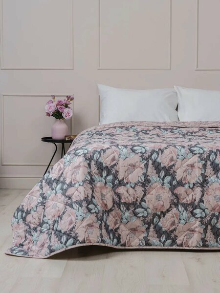 Покрывало очень приятное на ощупь, потому что оно изготовлено из перкали — ткани, в которой используются нити с высокой пряжей из 100% хлопка высшего сорта. Для окрашивания ткани используются безопасные красители европейского производства. Это позволяет использовать покрывало не только в качестве декоративного элемента, который подчеркнёт стиль и уют вашего дома, но и как плед для уютных вечеров с горячей кружкой травяного чая у окна. Покрывало безопасно для тела, что подтверждается сертификатами качества и соответствием госту. Оно имеет размер 180-220 см и стёганую структуру. У покрывала есть две лицевые стороны с обработанным краем «кант». Также представлены покрывала в одном тоне с подушками. «Мадам Текстиль».