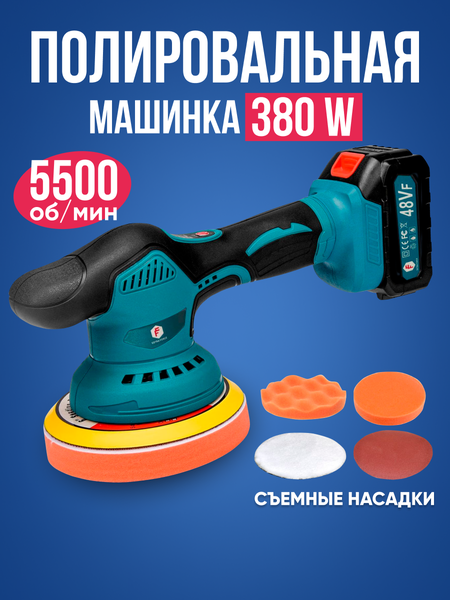 Полировальная машинка 380w для автомобиля детейлинг 5500 об /мин , 1сменный аккумулятор
