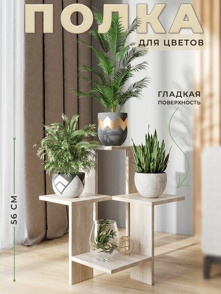Цветочница напольная из ЛДСП, многофункциональная полка дуб сонома – лучшее решение для вашего интерьера. Только представьте, эта полка для цветов напольная, сможет придать вашему домашнему оазису более гармоничное и аккуратное расположение. Цветы делают дом уютнее, будь то кухня, спальня или детская комната. Несмотря на свои не крупные размеры наша полочка выдерживает 115 КГ! Именно поэтому, все ваши горшочки будут в безопасности! Это не просто опора для цветов или гостиная мебель, это стильный элемент декора, который будет радовать вас ежедневно. Двухуровневая система расположения, четыре (4) вместительные полки, позволят реализовать самые смелые решения. Использовать можно не только для растений, но и как стеллаж для книг, косметики, фотографий и многого другого Наша деревянная полка изготовлена только из натуральных материалов, используется ЛДСП класса Е1. Мы старались не писать много текста, а лишь рассказать, что сделать свой дом уютнее, намного проще чем кажется! Спасибо за клик, и приятных покупок!