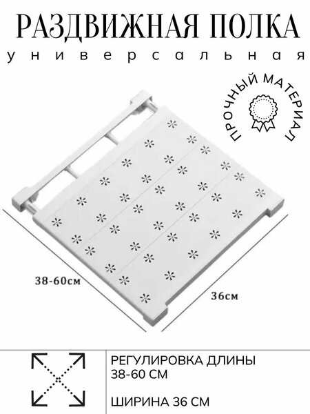 {"widgets":{"@card/UniversalPromoBadge":{"/content/page/fancyPage/defaultPage/universalPromoBadge":{"wrapperProps":{"margins":{"bottom":"3"}},"initialTime":1771564507502,"offerComposeId":"1916199699"}}},"meta":{"/content/page/fancyPage/defaultPage/universalPromoBadge":{"name":"@card/UniversalPromoBadge"}},"collections":{"productServiceSnippets":{"1916199699":{"productSnippet":{"snippetId":"document_id","type":"MODEL_CARD_LAYOUT","productPayload":{"snippetStyle":"NORMAL","title":{"value":"Раздвижная полка 38-60х36 см. /Полка раздвижная телескопическая в шкаф"},"badges":{},"gallery":{"mediaItems":[{"picture":{"baseUrl":"https://avatars.mds.yandex.net/get-mpic/1713519/2a00000195cd6322ff9ebe209a30a002f8fc/","width":900,"height":1200,"title":"Раздвижная полка 38-60х36 см. /Полка раздвижная телескопическая в шкаф"},"type":"IMAGE"},{"picture":{"baseUrl":"https://avatars.mds.yandex.net/get-mpic/4397559/2a0000018a4bbc20dbe1494fdc3aa415564b/","width":516,"height":688,"title":"Раздвижная полка 38-60х36 см. /Полка раздвижная телескопическая в шкаф"},"type":"IMAGE"},{"picture":{"baseUrl":"https://avatars.mds.yandex.net/get-mpic/5213758/img_id7490614867572120548.jpeg/","width":641,"height":573,"title":"Раздвижная полка 38-60х36 см. /Полка раздвижная телескопическая в шкаф"},"type":"IMAGE"},{"picture":{"baseUrl":"https://avatars.mds.yandex.net/get-mpic/6269810/img_id6215005898304967245.jpeg/","width":810,"height":1043,"title":"Раздвижная полка 38-60х36 см. /Полка раздвижная телескопическая в шкаф"},"type":"IMAGE"},{"picture":{"baseUrl":"https://avatars.mds.yandex.net/get-mpic/6453326/img_id3907471493901993457.jpeg/","width":805,"height":1196,"title":"Раздвижная полка 38-60х36 см. /Полка раздвижная телескопическая в шкаф"},"type":"IMAGE"},{"picture":{"baseUrl":"https://avatars.mds.yandex.net/get-mpic/6259567/img_id6511540531484275634.jpeg/","width":795,"height":911,"title":"Раздвижная полка 38-60х36 см. /Полка раздвижная телескопическая в шкаф"},"type":"IMAGE"},{"picture":{"baseUrl":"https://avatars.mds.yandex.net/get-mpic/6453326/img_id2618121387013598726.jpeg/","width":809,"height":738,"title":"Раздвижная полка 38-60х36 см. /Полка раздвижная телескопическая в шкаф"},"type":"IMAGE"},{"picture":{"baseUrl":"https://avatars.mds.yandex.net/get-mpic/6453326/img_id4603689140061160768.jpeg/","width":817,"height":587,"title":"Раздвижная полка 38-60х36 см. /Полка раздвижная телескопическая в шкаф"},"type":"IMAGE"},{"picture":{"baseUrl":"https://avatars.mds.yandex.net/get-mpic/6069165/img_id1773039682934082015.jpeg/","width":920,"height":976,"title":"Раздвижная полка 38-60х36 см. /Полка раздвижная телескопическая в шкаф"},"type":"IMAGE"},{"picture":{"baseUrl":"https://avatars.mds.yandex.net/get-mpic/7179065/img_id6161550371153630152.jpeg/","width":805,"height":1074,"title":"Раздвижная полка 38-60х36 см. /Полка раздвижная телескопическая в шкаф"},"type":"IMAGE"},{"picture":{"baseUrl":"https://avatars.mds.yandex.net/get-mpic/6780724/img_id5405173172914164299.jpeg/","width":810,"height":1045,"title":"Раздвижная полка 38-60х36 см. /Полка раздвижная телескопическая в шкаф"},"type":"IMAGE"},{"picture":{"baseUrl":"https://avatars.mds.yandex.net/get-mpic/4950407/img_id4406890905892661547.jpeg/","width":676,"height":940,"title":"Раздвижная полка 38-60х36 см. /Полка раздвижная телескопическая в шкаф"},"type":"IMAGE"},{"picture":{"baseUrl":"https://avatars.mds.yandex.net/get-mpic/6175789/img_id399565013467192500.jpeg/","width":820,"height":820,"title":"Раздвижная полка 38-60х36 см. /Полка раздвижная телескопическая в шкаф"},"type":"IMAGE"},{"video":{"url":"https://frontend.vh.yandex.ru/player/vTEcIJ0tkjS8","width":900,"height":1200,"title":"Раздвижная полка 38-60х36 см. /Полка раздвижная телескопическая в шкаф","preview":{"baseUrl":"https://avatars.mds.yandex.net/get-mpic/5191310/2a00000195cd84b9bf5564d0b5f52c6520a6/","width":900,"height":1200,"title":"Раздвижная полка 38-60х36 см. /Полка раздвижная телескопическая в шкаф"},"streams":[{"type":"dash","url":"https://strm.yandex.ru/vod/vh-market-upload-converted/vod-content/7111355769679346523/2833a1d9-af82-4127-8c2b-5022a8718a36/kaltura/desc_d07720c152228eaf58a99a5fe5182e60/3426505165438994252/ysign1=b88179b72699a72f5fdefb3187147fa5db8aaaa8636b60e6b0af695e1563d41d,abcID=1632,from=unknown,pfx,sfx,ts=69a51cda/manifest.mpd"},{"type":"hls","url":"https://strm.yandex.ru/vod/vh-market-upload-converted/vod-content/7111355769679346523/2833a1d9-af82-4127-8c2b-5022a8718a36/kaltura/desc_d07720c152228eaf58a99a5fe5182e60/3426505165438994252/ysign1=15c7c329a2a26f7ad64dd5bc7a886a7e55d50423d93c088192b842f72eee1366,abcID=1632,from=unknown,pfx,sfx,ts=69a51cda/master.m3u8"}]},"type":"VIDEO"}]},"rating":{"ratingValue":3,"ratingCount":4,"reviewsCount":3,"ratingCountStats":{"cnt1":2,"cnt2":0,"cnt3":0,"cnt4":0,"cnt5":2},"snippet":{"rating":"3.0","type":"product","description":"(4) · 21 купили","descriptionList":["(4)","21 купили"],"ratingStar":"3"}},"wishlistButton":{"businessId":18270452,"mskuId":102289377688,"modelId":1916199699,"oskuId":102289377688},"productRating":{"rating":"3.0","type":"product","description":"(4) · 21 купили","descriptionL