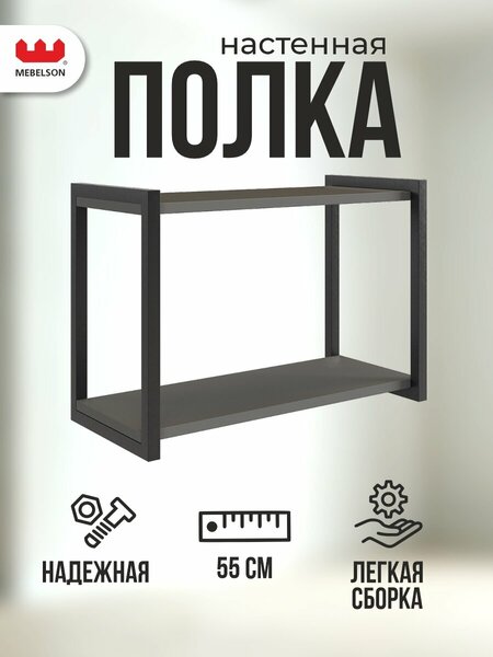Полка навесная "Юниор", цвет Графит/черный муар, 55*25*38 см, Mebelson