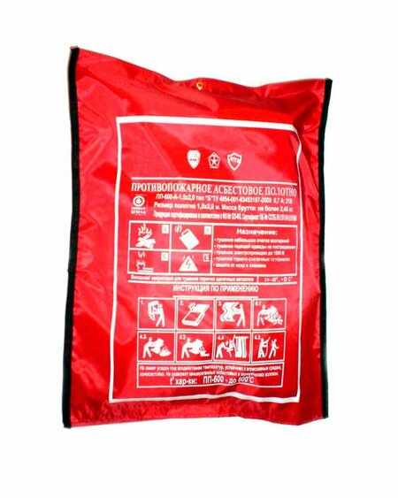 Противопожарное полотно ПП-600 размером 1,5×2 м. Противопожарное полотно (кошма) используется для эффективной нейтрализации горения материалов на ранней стадии пожара. Изготавливается из кремнеземной ткани с превосходными огнезащитными характеристиками (может использоваться при температуре до 600 °С).