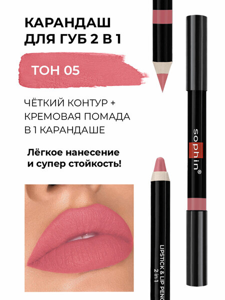 Помада-карандаш для губ 2 в 1 от Sophin - это профессиональное средство для создания стойкого и насыщенного макияжа. Натуральный контурный карандаш для губ и помада-карандаш 2 в 1 отлично подойдут для создания как дневного, так и вечернего макияжа. Комплекс растительных масел и натуральных восков, входящих в состав продукта, питает и увлажняет кожу губ, а также защищает ее от негативного воздействия окружающей среды. Двухстороннее средство обладает идеально подобранными цветами контура и помады. Насыщенные оттенки розового, кораллового и светло-розового подойдут для любого образа и стиля. Способ применения помады-карандаша прост и удобен: обведите контур губ контурным карандашом, затем покройте губы цветом помады. Состав помады-карандаша включает в себя Ricinus Communis Seed Oil, Isostearyl Isostearate, Isononyl Isononanoate, Hydrogenated Vegetable Oil, Candelilla Cera, Ozokerite, Copernicia Cerifera Cera, Mica, Bis-Diglyceryl Polyacyladipate-2, Isocetyl Stearoyl Stearate, Isopropyl Myristate, Propylene Glycol, BHT, Ascorbyl Palmitate, Glyceryl Stearate, Citric Acid, а также различные красители и ароматизаторы. Вес помады-карандаша составляет 3,2 грамма. Продукт произведен в Германии и имеет срок хранения при температуре от +5 до +25 градусов.