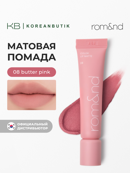 {"widgets":{"@card/VerifiedBadge":{"/content/page/fancyPage/defaultPage/verifiedBadge":{"wrapperProps":{"margins":{"bottom":"3"}},"badges":[{"style":"BG_INVERT_PRIMARY","text":"Оригинал","showChevron":false,"popupInfo":{"title":"Оригинал","items":[{"text":"Так отмечаются товары, по которым продавцы предоставили документы об оригинальности"}]},"zoneData":{"text":"Оригинал","type":"text"}}],"isUltimaKM":false,"footerButtonText":"Понятно"}}},"meta":{"/content/page/fancyPage/defaultPage/verifiedBadge":{"name":"@card/VerifiedBadge"}},"collections":{"offerAnalytics":{"1969391826879356038":{"showUid":"17716697691098263996306001","promoAttributes":[{"shopPromoId":"cf_135726","promoType":"empty-promo","promoKey":"xD1-78LDt8ve5lk-5jj0FQ"}],"wareId":"0RY7gHGAQtWgtDUW35_DnQ","modelId":"1302323629","marketSku":"4603999433","paymentMethodTypes":["deliverycard","deliverycash","prepaymentcard"],"isCrossBorder":true,"isOnDemand":true,"isSponsored":false,"skuId":"4603999433","oskuId":"4464576363","marketSkuCreator":"market","price":189151,"oldPrice":210291,"merchPrice":210291,"vendorId":28454850,"hid":4748057,"nid":16681160,"isDigital":false,"deliveryPartnerTypes":["YANDEX_MARKET"],"offerColor":"blue","productId":1302323629,"feedId":1132888,"availableCount":17,"shopId":431782,"supplierId":1221736,"shopSku":"53905","isExpress":false,"warehouseId":172,"isBnpl":true,"isInstallments":false,"businessId":"1081335","paymentTypes":["POSTPAYMENT","PREPAYMENT"],"benefit":{"type":"waremd5","isPrimary":true,"description":"Хорошая цена от надёжного магазина"},"yandexBnplInfo":{"enabled":true},"isBondAvailable":false,"isDSBS":false,"promos":[{"key":"xD1-78LDt8ve5lk-5jj0FQ","type":"empty-promo","shopPromoId":"cf_135726","landingUrl":"https://market.yandex.ru/special/empty-promo-landing?shopPromoId=cf_135726","isPersonal":false,"description":"Новые_акции_для_лендингов_полок_УЗБ_Beauty_1201"}],"prices":{"price":{"value":189151,"currency":"UZS"},"priceWithoutVat":{"value":180144,"currency":"UZS"},"discountedPrice":{"price":{"value":189151,"currency":"UZS"},"discount":{"value":21140,"currency":"UZS"},"percent":10}},"supplierType":"3","pp":200,"gci":"4464576363","title":"Помада матовая | Rom&nd Color Lip Matte 08 Butter Pink, 8 грамм"}},"vendorDoc":{"1969391826879356038":{"verified":true}},"badges":{"1969391826879356038":{"gallery":["bi_8266655855392218655"],"train":[]}},"badgeItem":{"bi_8266655855392218655":{"style":"BADGE_PROPERTY_PRIMARY","type":"text","text":"ОРИГИНАЛ","popupInfoId":"pp_3667891250342019889","showChevron":true,"analytics":{"type":"originalBadge","text":"ОРИГИНАЛ","position":0}}},"popupInfo":{"pp_6993192843758516824":{"type":"onClickSignal","params":{"title":"Когда заказ приедет из-за рубежа, курьер привезёт его по клику","items":[{"label":"Назначим точную дату доставки","text":"Когда заказ пройдет таможню","icon":"calendar"},{"label":"В день доставки напишем, что можно вызвать курьера","text":"На это будет 3 дня","icon":"bell"},{"label":"Нажмите кнопку, и курьер приедет","text":"В течение 15–30 минут","icon":"click"}],"actions":[{"text":"Понятно","type":"close","theme":"normal"}]}},"pp_1120597706417580457":{"type":"crossborderSignal","params":{"title":"Доставка из-за рубежа","text":"Для таможни понадобятся паспортные данные и ПИНФЛ получателя. Их запросит Market или продавец.\n\nЗарубежные заказы общей стоимостью до $200 за календарный месяц пошлиной не облагаются.\n\nПри исчерпании лимита пошлина составит 30% от суммы превышения. Смс для оплаты придёт в день прибытия товаров на таможню.\n\nВ течение полугода рекомендуем покупать не больше 2 одинаковых товаров. Это связано с таможенными ограничениями для физических лиц.","actions":[{"text":"Узнать больше","type":"link","link":"https://yandex.uz/support/market-yandex-go/customer/ru/cross-border","theme":"normal"},{"text":"Понятно","type":"close","theme":"action"}]}},"pp_3667891250342019889":{"params":{"title":"Оригинал","items":[{"text":"Так мы отмечаем товары популярных брендов, если продавец предоставил документы об оригинальности"}]}},"pp_15773598120700656811":{"type":"priceDetails","params":{"priceDetails":{"title":"Помада матовая | Rom&nd Color Lip Matte 08 Butter Pink, 8 грамм","prices":[{"value":{"content":[{"type":"price","value":"189151.000000","unit":"сум"}],"feature":"RED_PRICE"},"subtitle":{"content":[{"type":"literal","value":"цена на товар"}],"feature":"SECONDARY_RED"}}],"discountDetails":[{"label":{"content":[{"type":"literal","value":"Обычная цена"}],"feature":"DETAIL_LABEL"},"value":{"content":[{"type":"price","value":"210291.000000","unit":"сум"}],"feature":"DETAIL_VALUE_CROSSED"}},{"label":{"content":[{"type":"literal","value":"Скидка "},{"type":"price","value":"10","unit":"%"}],"feature":"DETAIL_LABEL"},"value":{"content":[{"type":"price","value":"-21140","unit":"сум"}],"feature":"DETAIL_VALUE"}}]},"title":"Детали цены","actions":[{"text":"Понятно","type":"close","theme":"action"}]}}},"i18n":{"translations":{"common.buttons:add":"Добавить","common.buttons:add-data":"Добавить дан