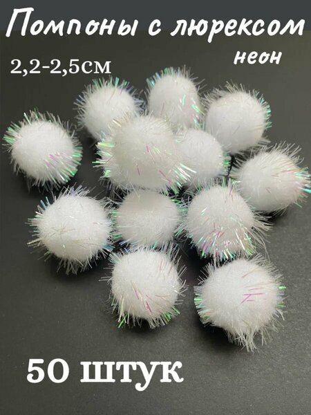 Помпоны декоративные, с люрексом, полиэстер, диаметр 2,5 см, 50 штук