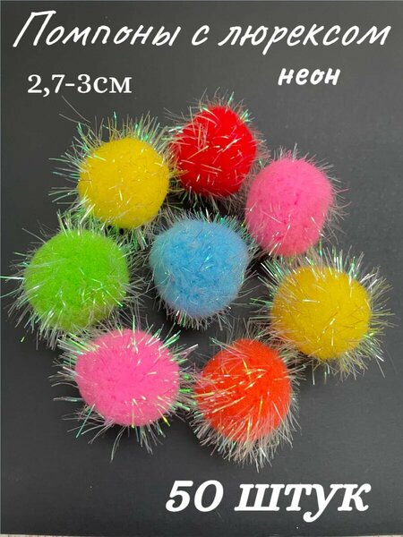 Помпоны декоративные, с люрексом, полиэстер, диаметр 3 см, 50 штук