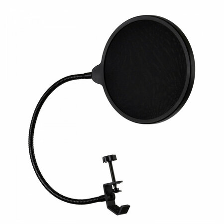 FZONE PF-8 - поп-фильтр, гусиная шея, крепление зажим. Доступный нейлоновый поп-фильтр на гусиной шее. Предназначен для крепления на микрофонные стойки с помощью струбцины. Защищает от взрывных звуков при пении. диаметр 150 мм, гибкое основание 350 мм