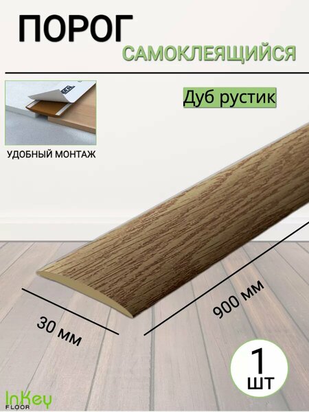 Самоклеящийся напольный порог шириной 30 мм в декоре "дуб рустик" предназначен для декоративной отделки стыков одноуровневых и разноуровневых напольных покрытий. Комплектация из 1 штуки длиной по 90 см позволяет эффективно использовать изделие как для домашних, так и для офисных интерьеров. Порог идеально подходит для оформления переходов между паркетом, ламинатом, плиткой или линолеумом. Данный профиль обеспечивает плотное прилегание благодаря клеевой основе, которая надежно фиксирует порожек на поверхности и защищает от проникновения влаги. Его конструкция адаптирована к небольшим перепадам высоты до 1,5 мм, что делает его отличным решением для разноуровневых стыков в дверных или арочных проемах. Самоклеящийся монтаж позволяет быстро установить порог без применения специальных инструментов. Просто отмерьте нужную длину, отрежьте ножницами или ножом и приклейте на заранее очищенную поверхность. Гибкий материал облегчает установку даже на неровные участки пола. Порожек выполнен из долговечного материала с устойчивым к истиранию декоративным покрытием. Он сохраняет свой внешний вид даже при интенсивном использовании и частой уборке моющими средствами. Эстетичный цвет "дуб рустик" гармонично вписывается в современные интерьеры, подчеркивая стильность помещений. Этот универсальный угловой элемент используется не только как отделка стыков разных материалов, но и как дополнительная защита краев покрытия от повреждений. Благодаря своей практичности и привлекательному дизайну он станет незаменимым аксессуаром при ремонте или обновлении полов. Подходит для использования с различными покрытиями: ковролином, плиткой, ламинатом, паркетом или линолеумом. Самоклеющийся порог сочетает функциональность и эстетичность — это простой способ сделать ваш пол красивым и аккуратным!