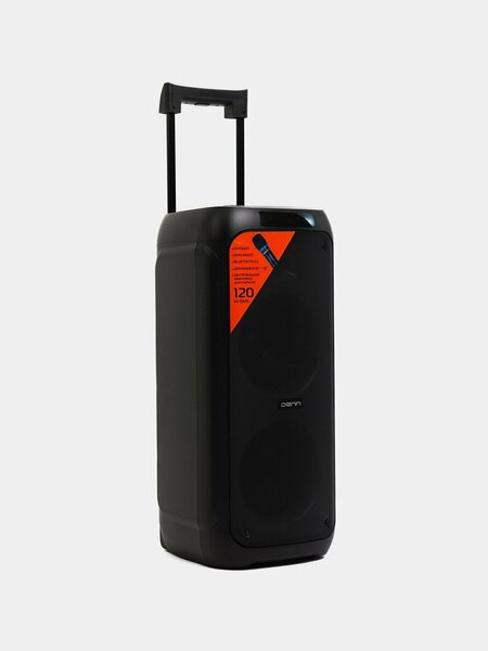 Возможность беспроводного соединения колонок (TWS) Номинальная мощность фронтальных колонок - 120 Вт; Пиковая - 1000 Вт Встроенный эквалайзер, 5 предустановок FM тюнер Динамическая подсветка корпуса Беспроводной микрофон в комплекте Частотный диапазон - 40 Гц - 20000 Гц Поддерживаемые аудио форматы: MP3, WMA, WAV Bluetooth 5.0, Входы для USB и SD карт До 5 часов автономной работы Портативная акустическая система DENN INSPIRE (DPS555) выполнена в пластиковом корпусе с ручкой для транспортировки. На верхней части расположена панель управления: можно менять громкость системы и подключенного микрофона, изменять настройки подсветки корпуса, включать режим TWS (для сопряжения двух одинаковых колонок) и изменять частотные характеристики. Там же расположены порты для подключения внешних устройств: USB, слот для установки карт формата microSD, микрофонный и гитарный входы, линейный вход. Для воспроизведения контента колонка использует два широкополосных динамика с фазоинвертором. Общая мощность звуковой системы — 120 Вт, частотный диапазон — от 40 Гц до 20 кГц. Модель поддерживает воспроизведение музыки со смартфона или планшета, используя модуль Bluetooth. Время работы от установленного аккумулятора — 5 часов.