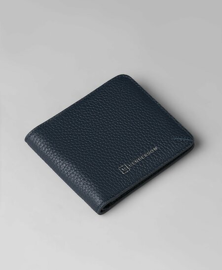 Мужское портмоне HENDERSON на кнопке. Аксессуар выполнен из 100% натуральной рельефной кожи глубокого синего цвета. Декорирован серебристым тиснением с названием бренда и аккуратной строчкой в углу. Внутри в портмоне предусмотрено отделение для наличных купюр, множество карманов для пластиковых карт, а также вместительное отделение на молнии для монет. Модель дополнена технологичной вставкой RFID, которая блокирует любую попытку удаленной кражи данных с ваших банковских карт. В комплект аксессуаров можно подобрать обложку для документов в таком же стиле.