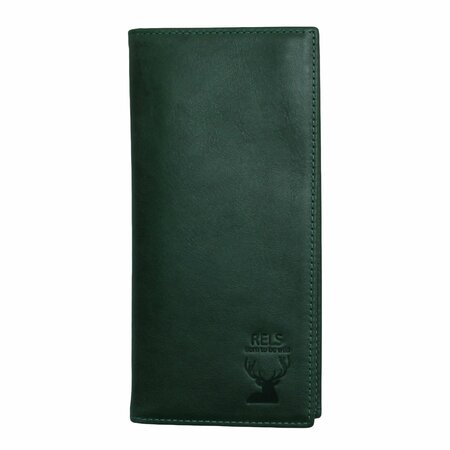 Вертикальное портмоне (Портмоне лонгер), модель Roberts (Робертс), коллекция Wild (Вайлд). Изготовлено из натуральной кожи. Цвет: Зелёный (Тёмно-зеленый, хаки). Сорт кожи: Druid (Друид). Вертикально ориентированное портмоне с книжным разворотом. На стенках изделия предусмотрено 14 слотов для хранения пластиковых карт. Изделие позволяет идеально организовать хранения купюр, с помощью 7-ми разных отделений. Габариты изделия в закрытом виде: 90x190x10 миллиметров. Упаковка: подарочная коробка RELS Born To Be Wild из плотного дизайн картона коричневого цвета.