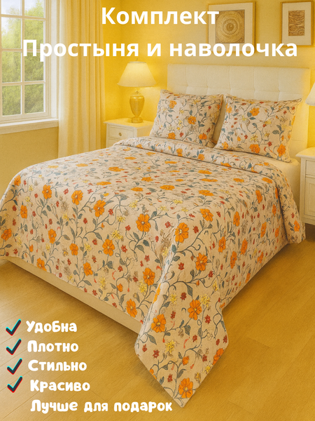 Постельное белья "Простыня и наволочка" размер евро стандарт