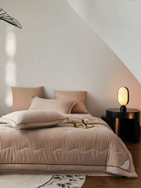 Комплект постельного белья евро с одеялом бархатный сатин - это идеальный выбор для тех, кто ценит комфорт и качество. Представленный комплект постельных принадлежностей предлагается с стандартной простыней и простыней на резинке по кругу, что позволит использовать данный комплект не только для кроватей с матрасом, но и для дивана. В комплект постельного белья евро входит объемное одеяло размером 200x220 см, которое обеспечивает максимальный комфорт и тепло в любое время года. Кроме того, в комплекте есть простыня размером 220x240 см, две наволочки с клапаном размером 70х70 см и две наволочки 50x70 см. Яркие цвета комплекта создадут уютную атмосферу в Вашей спальне, а практически не мнущаяся ткань из 95% хлопка и 5% полиэстера обеспечит долговечность и удобство в использовании. Тип плетения ткани - сатин, что придает постельному белью невероятную нежность и мягкость. Плотность ткани составляет 150 гр/м, что является оптимальным для создания комфортной атмосферы в спальне. Наполнитель одеяла - шелк, который обеспечивает максимальную теплоизоляцию и удобство в использовании. Одеяло в комплекте постельного белья не нужно заправлять в пододеяльник, это сэкономит ваше время. Комплект постельного белья евро с одеялом легко стирается при температуре не более 40 градусов, нельзя отбеливать и можно стирать и сушить в стиральной машине. Кроме того, в комплекте есть сумка для хранения, что обеспечивает удобство в хранении и транспортировке. Набор постельных принадлежностей - это отличный подарок на любой праздник: Новый год, день рождения, новоселье, свадьбу или годовщину. Комплект постельного белья евро с одеялом - это гарантия комфорта и качества на долгие годы.