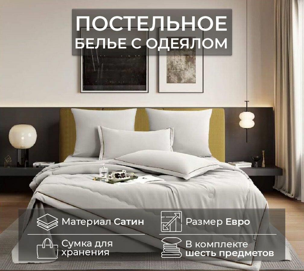 Комплект постельного белья евро с одеялом - это идеальный выбор для тех, кто ценит комфорт и качество. Представленный комплект постельных принадлежностей предлагается с стандартной простыней, что позволит использовать данный комплект не только для кроватей с матрасом, но и для дивана. В комплект постельного белья евро входит одеяло размером 200x220 см, которое обеспечивает максимальный комфорт и тепло в любое время года. Кроме того, в комплекте есть простыня на резинке размером 180x200+30 см высота матраса и две наволочки 70х70 и две наволочки с клапаном размером 50x70 см. Яркие цвета комплекта создадут уютную атмосферу в Вашей спальне, а практически не мнущаяся ткань из 80% хлопка и 20% вискоза обеспечит долговечность и удобство в использовании. Тип плетения ткани - бархатный сатин, что придает постельному белью невероятную нежность и мягкость. Плотность ткани составляет 150 гр/м, что является оптимальным для создания комфортной атмосферы в спальне. Наполнитель одеяла - шелк, который обеспечивает максимальную теплоизоляцию и удобство в использовании. Одеяло в комплекте постельного белья не нужно заправлять в пододеяльник, это сэкономит ваше время. Комплект постельного белья евро с одеялом легко стирается при температуре не более 40 градусов, нельзя отбеливать и можно стирать и сушить в стиральной машине. Кроме того, в комплекте есть сумка для хранения, что обеспечивает удобство в хранении и транспортировке. Набор постельных принадлежностей - это отличный подарок на любой праздник: Новый год, день рождения, новоселье, свадьбу или годовщину. Комплект постельного белья евро с одеялом - это гарантия комфорта и качества на долгие годы.