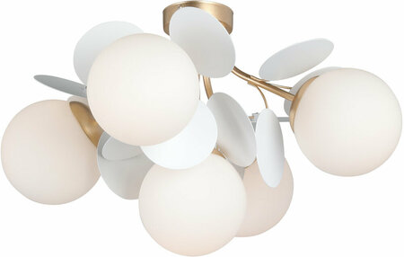 Бесплатный монтаж, Стиль: Арт-деко, Место: Для спальни, Вид ламп: Накаливания, Количество ламп: 5, Общая мощность: 200, Материал плафона: Стекло, Материал арматуры: Металл, Цвет плафона: Белый, Цвет арматуры: Золото, Форма плафона: Шар, Тип цоколя: E14, Площадь освещения: 10 кв.м, Напряжение питания: 220, Степень защиты по IP: 20, Высота: 350, Диаметр: 580