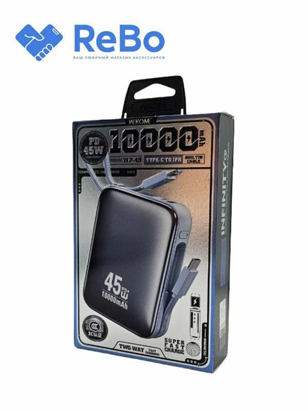 ️ Ультрабыстрая Зарядка PD 45W: Заряжайте свои устройства со скоростью молнии благодаря новейшей технологии Power Delivery (PD)! Идеально подходит для ноутбуков, планшетов и смартфонов. Цените свое время! * Большая Емкость 10000mAh: Оставайтесь заряженными весь день с этой мощностью, достаточной для многократной зарядки. Вы никогда не останетесь без заряда в путешествии, на работе или учебе! * Встроенные Кабели: Устали искать и носить с собой дополнительные кабели? Infinity WZ-43 включает в себя встроенные кабели Type-C и iPhone (Lightning)! Это сделает вашу жизнь еще проще. * TWO-WAY Super Fast Charge: Возможность очень быстрой зарядки самого повербанка. Больше нет времени на ожидание! * Компактный и Современный Дизайн: Легко помещается в вашем кошельке или сумке. Элегантный и минималистичный дизайн, подходящий для любого стиля. * ️ Многоуровневая Защита: Ваше устройство в полной безопасности благодаря интеллектуальным системам защиты от перезарядки, короткого замыкания и перегрева!