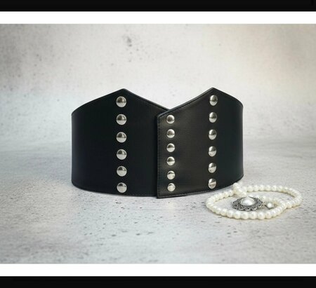 Пояс женский, корсет, для платья- Изготовлен из натуральной кожи – обеспечивает прочность и элегантный внешний вид.- Декоративные заклепки добавляют индивидуальности и становятся стильным акцентом образа.- Универсальный размер идеально подходит для большинства типов фигуры.- Создан специально для дополнения платьев, подчеркивая линии силуэта.- Лаконичный дизайн сочетается с разными стилями одежды, от классических до вечерних образов.