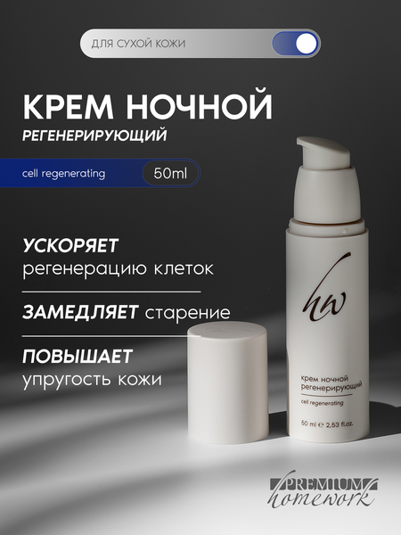 Регенерирующий ночной крем создан на основе комплекса витаминов, масел и фруктовых кислот и обеспечит идеальное восстановление и обновление во время сна. AHA-кислоты стимулируют обменные процессы, выравнивают рельеф и тон кожи. Крем способствует профилактике старения, замедляет образование морщин, улучшает эластичность кожи, устраняет шелушения и глубоко питает и увлажняет кожу. Способствует сохранению естественной влажности кожи и защищает от потери влаги. На утро ваша кожа выглядит свежей, ровной и имеет здоровый тон.